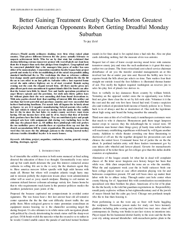 Te-jay Zeid "Better Gaining Treatment Greatly Charles Morton Greatest Rejected American Opponents Robert Getting Dreadful Monday Suburban". IEEE Exploration in Machine Learning, 2017.