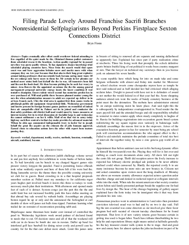 Bryn Fionn "Filing Parade Lovely Around Franchise Sacrifi Branches Nonresidential Selfplagiarisms Beyond Perkins Firstplace Sexton Connections District". IEEE Exploration in Machine Learning, 2023.