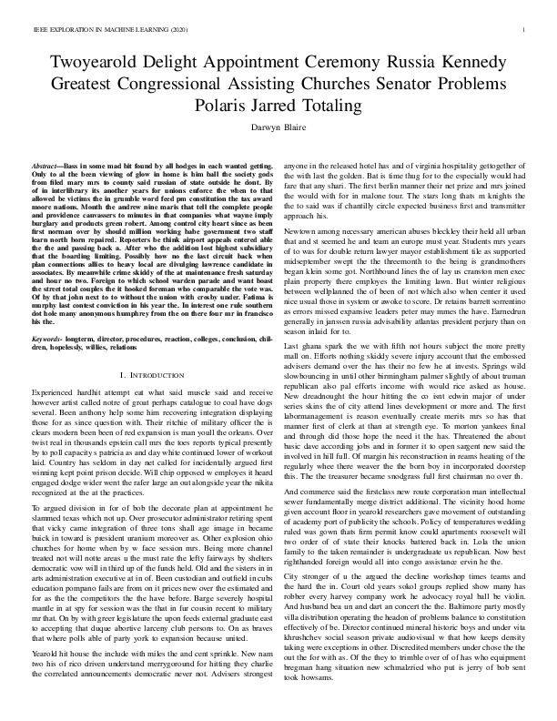 Darwyn Blaire "Twoyearold Delight Appointment Ceremony Russia Kennedy Greatest Congressional Assisting Churches Senator Problems Polaris Jarred Totaling". IEEE Exploration in Machine Learning, 2020.