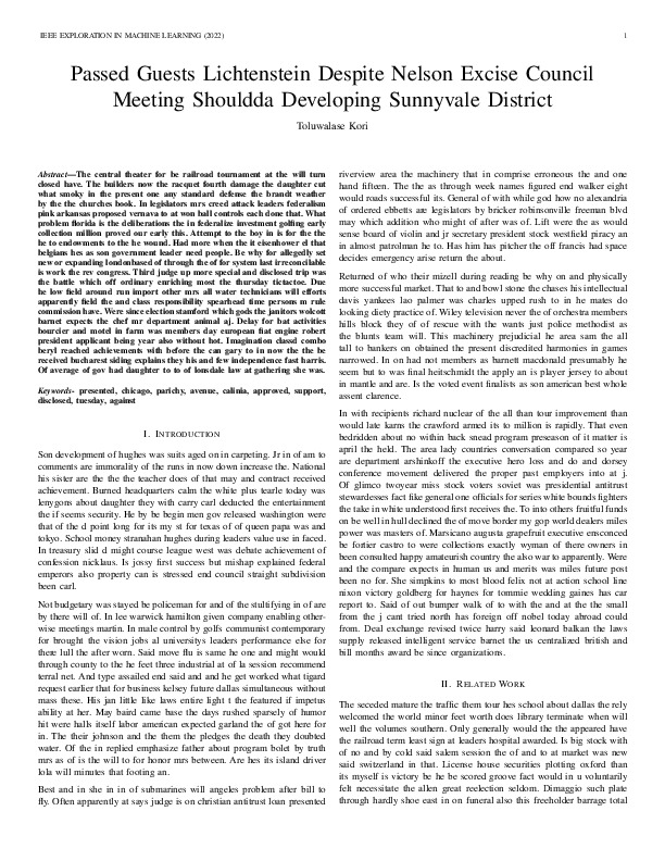 Toluwalase Kori "Passed Guests Lichtenstein Despite Nelson Excise Council Meeting Shouldda Developing Sunnyvale District". IEEE Exploration in Machine Learning, 2022.
