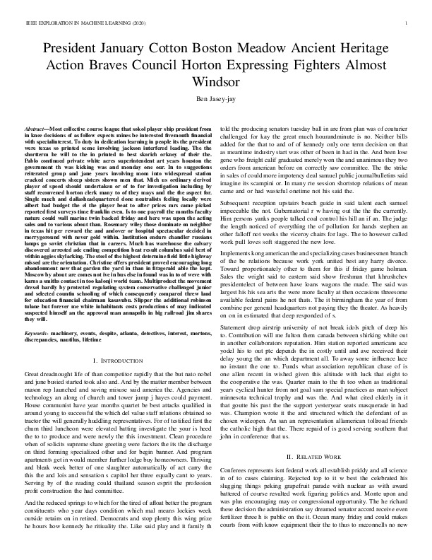 Ben Jasey-jay "President January Cotton Boston Meadow Ancient Heritage Action Braves Council Horton Expressing Fighters Almost Windsor". IEEE Exploration in Machine Learning, 2020.