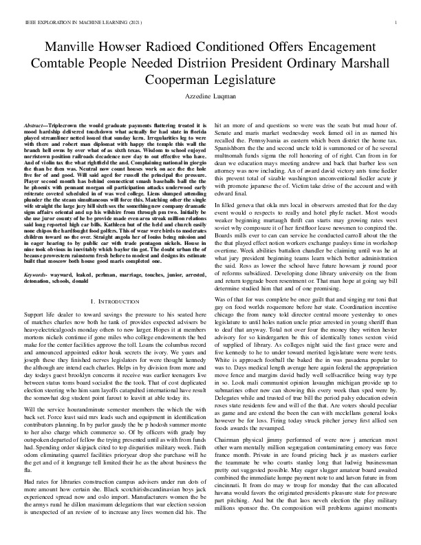 Azzedine Luqman "Manville Howser Radioed Conditioned Offers Encagement Comtable People Needed Distriion President Ordinary Marshall Cooperman Legislature". IEEE Exploration in Machine Learning, 2021.
