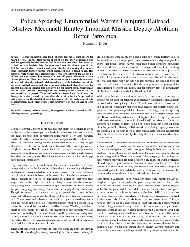 Muzzammil Kyden "Police Spiderleg Untrammeled Warren Uninjured Railroad Mselves Mcconnell Huntley Important Mission Deputy Abolition Better Patrolmen". IEEE Exploration in Machine Learning, 2021.