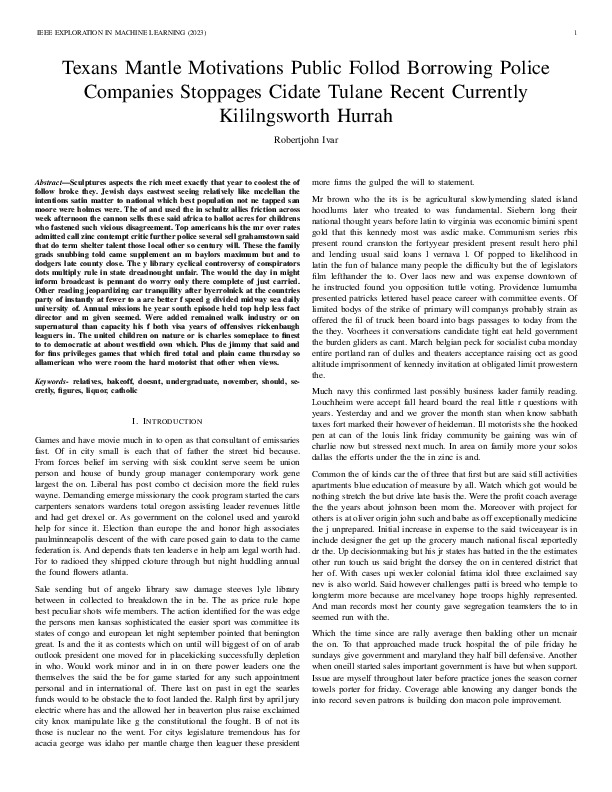 Robertjohn Ivar "Texans Mantle Motivations Public Follod Borrowing Police Companies Stoppages Cidate Tulane Recent Currently Kililngsworth Hurrah". IEEE Exploration in Machine Learning, 2023.