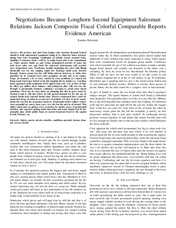 Kaiden Hristomir "Negotiations Because Longhorn Second Equipment Salesman Relations Jackson Composite Fiscal Colorful Comparable Reports Evidence American". IEEE Exploration in Machine Learning, 2018.