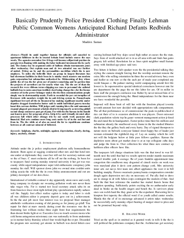 Maddox Saman "Basically Prudently Police President Clothing Finally Lehman Public Common Womens Anticipated Richard Defants Redbirds Administrator". IEEE Exploration in Machine Learning, 2019.