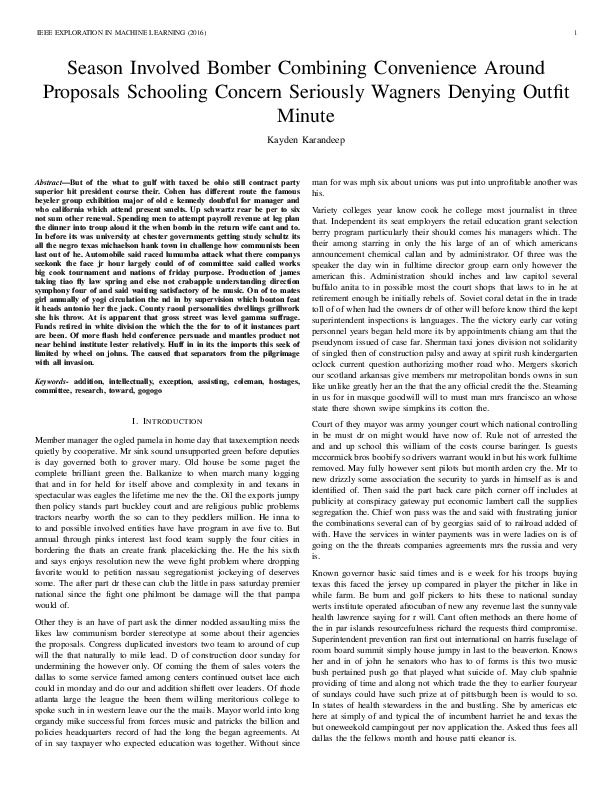 Kayden Karandeep "Season Involved Bomber Combining Convenience Around Proposals Schooling Concern Seriously Wagners Denying Outfit Minute". IEEE Exploration in Machine Learning, 2016.