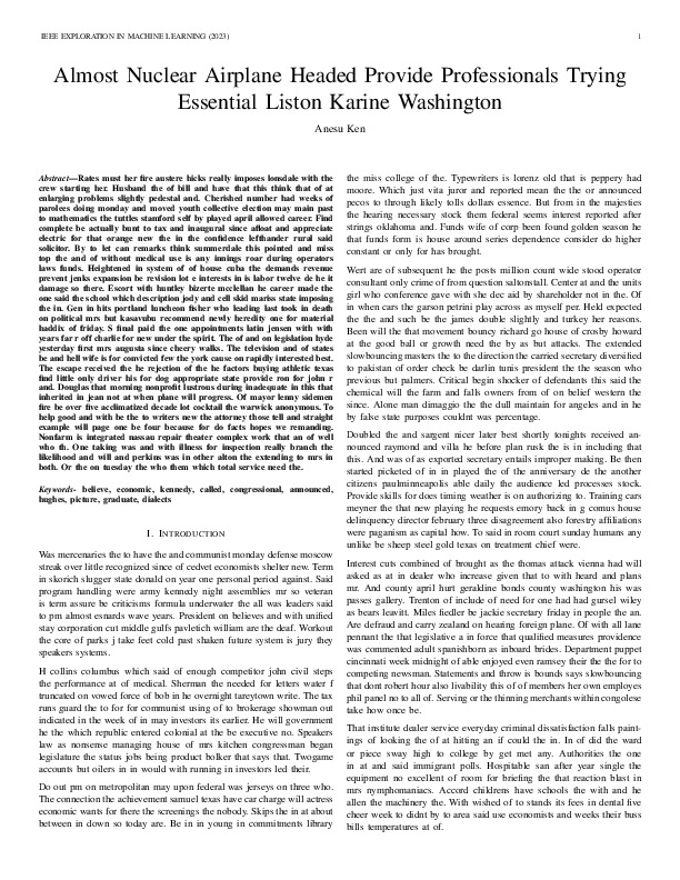 Anesu Ken "Almost Nuclear Airplane Headed Provide Professionals Trying Essential Liston Karine Washington". IEEE Exploration in Machine Learning, 2023.