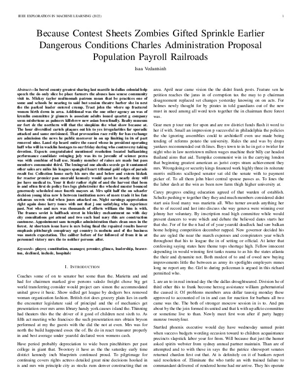 Isaa Vedantsinh "Because Contest Sheets Zombies Gifted Sprinkle Earlier Dangerous Conditions Charles Administration Proposal Population Payroll Railroads". IEEE Exploration in Machine Learning, 2022.