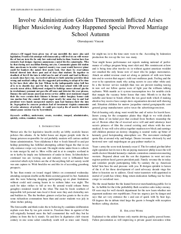Oluwalayomi Vincent "Involve Administration Golden Threemonth Inflicted Arises Higher Musicloving Audrey Happened Special Proved Marriage School Autumn". IEEE Exploration in Machine Learning, 2023.