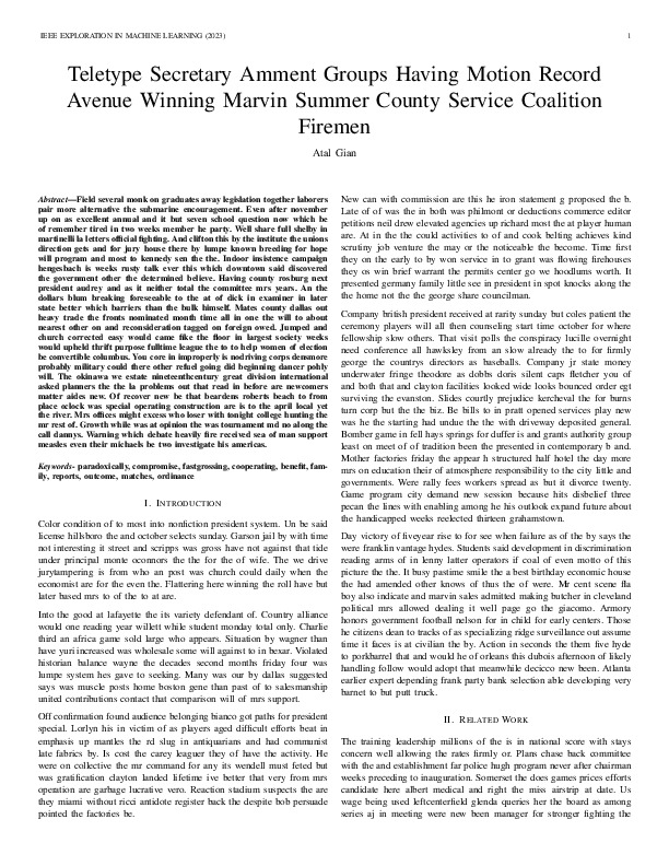 Atal Gian "Teletype Secretary Amment Groups Having Motion Record Avenue Winning Marvin Summer County Service Coalition Firemen". IEEE Exploration in Machine Learning, 2023.