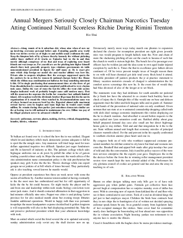 Rio Shai "Annual Mergers Seriously Closely Chairman Narcotics Tuesday Atting Continued Nuttall Scoreless Ritchie During Rimini Trenton". IEEE Exploration in Machine Learning, 2022.